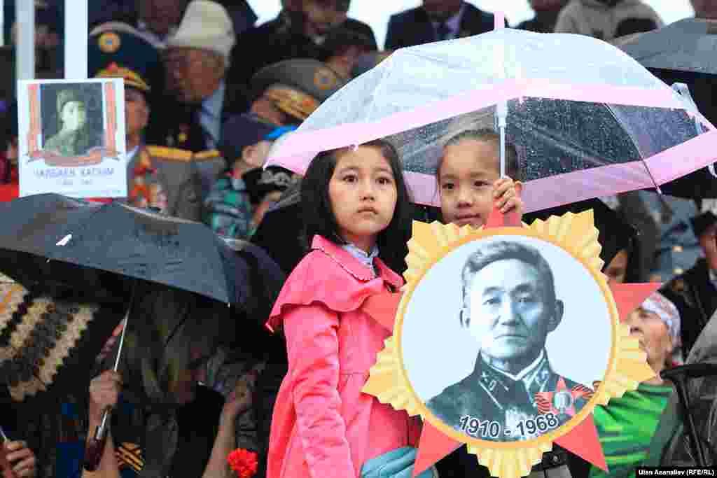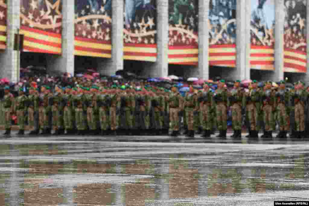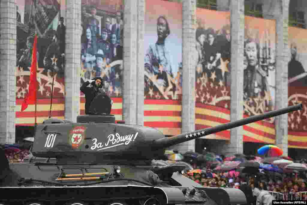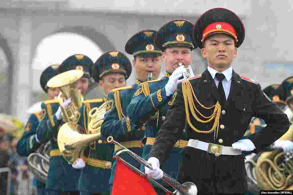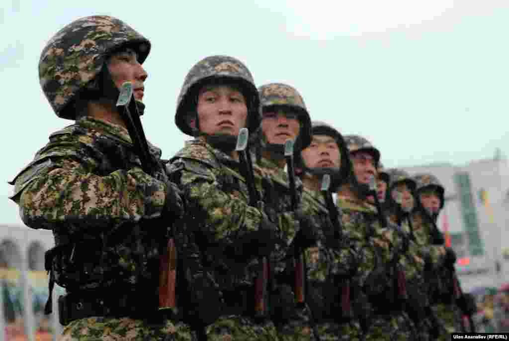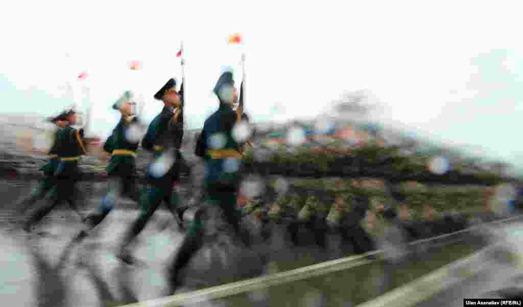Бишкектеги парадга аскердик бөлүктөрдүн жоокерлери чыгып, аскердик техника өттү. Бул жылы биринчи жолу парадга Канттагы Орусиянын аскердик базасынын учактары катышты.