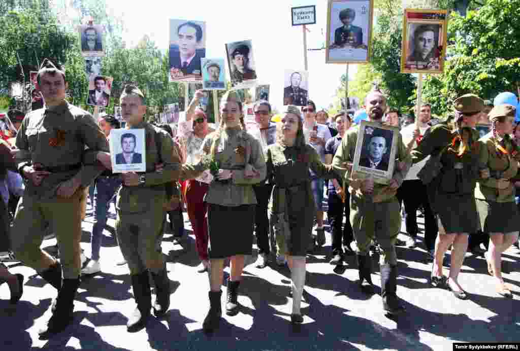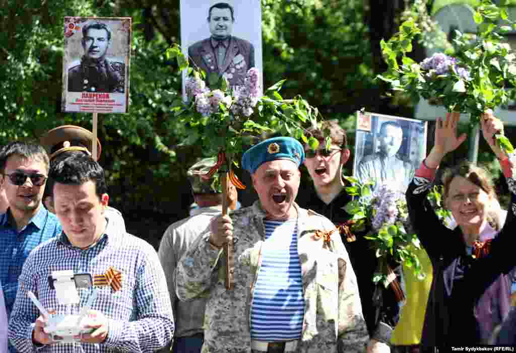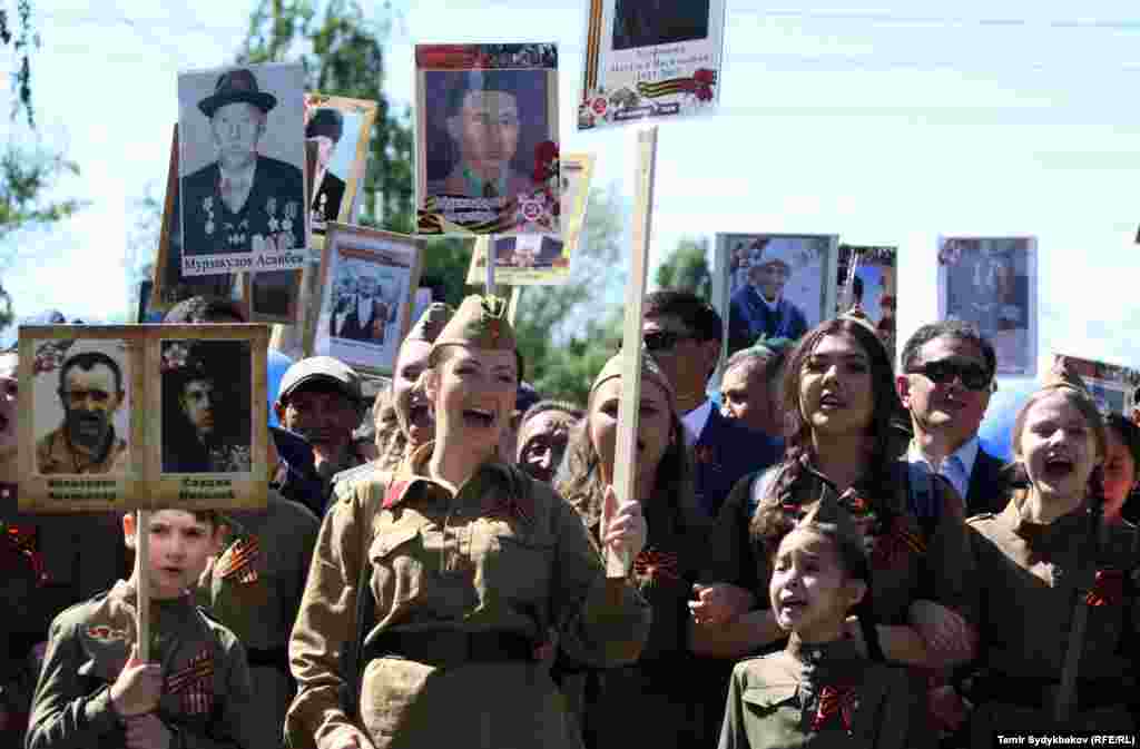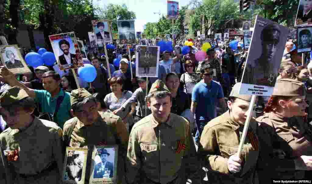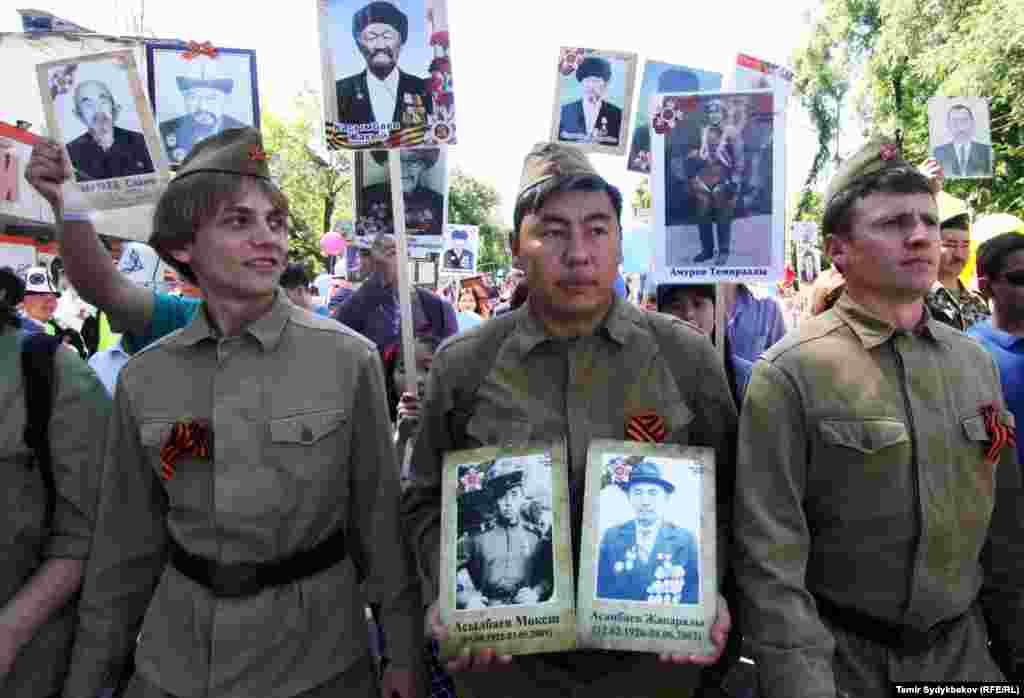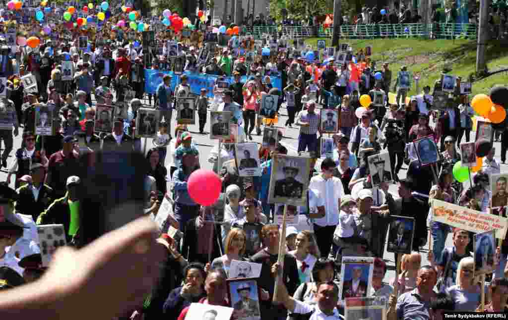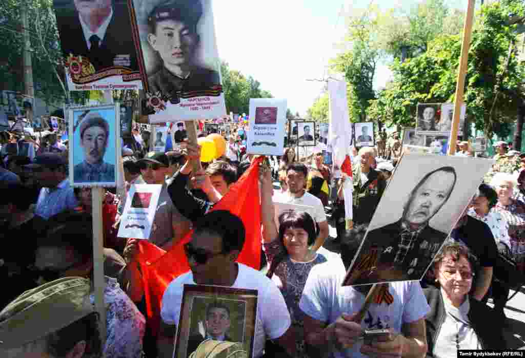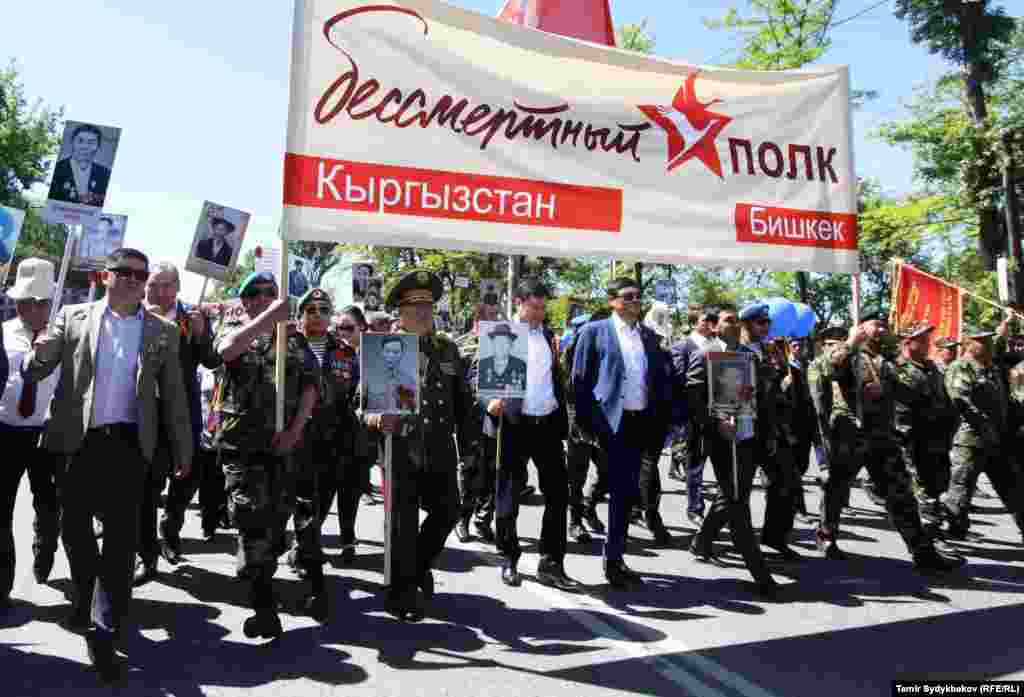 Бишкектин Түштүк дарбазасынан "Өлбөс полк" жүрүшү башталып, Жеңиш аянтында аяктады. Ага жалпысынан 30 миңдей адам катышты. Ушундай эле иш-чаралар, майрамдык параддар өлкөнүн бардык аймактарында өткөрүлдү.
