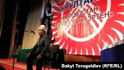 Курултай "Манас" айтуу менен башталды. Манасчы Дөөлөт Сыдыков сахнада.